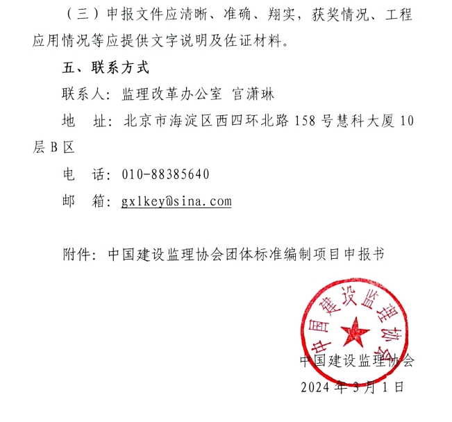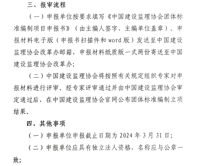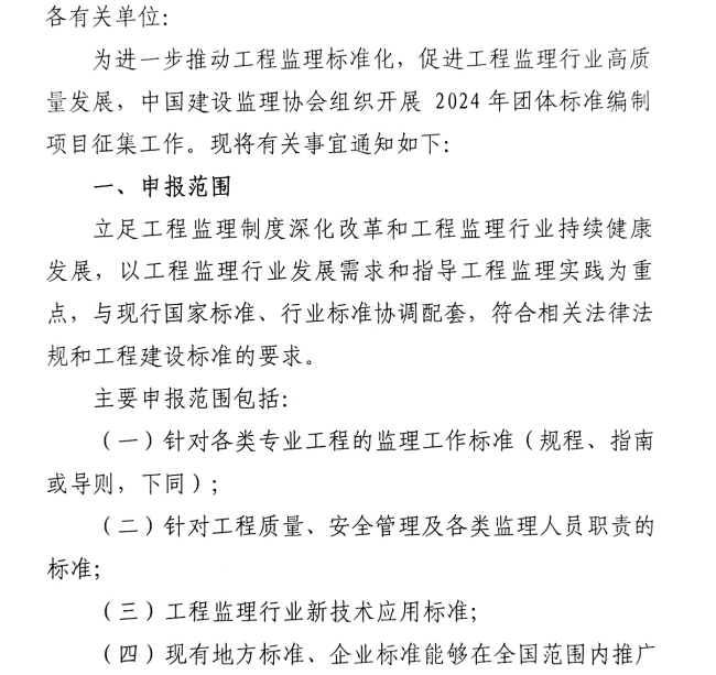 關于征集2024年中國建設監理協會團體標準編制項目的通知