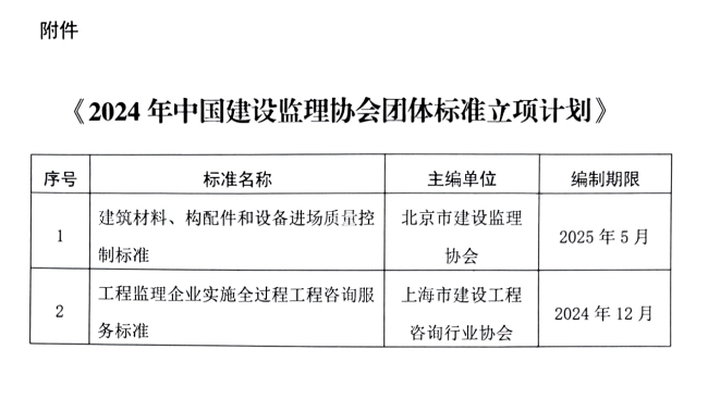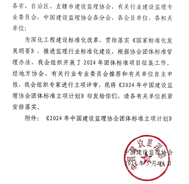 關于發布《2024年中國建設監理協會團體標準立項計劃》的通知