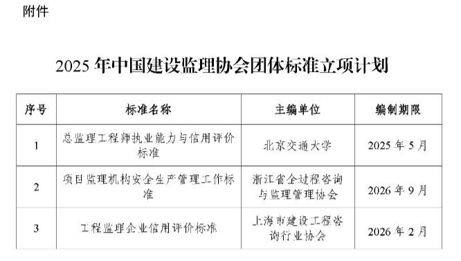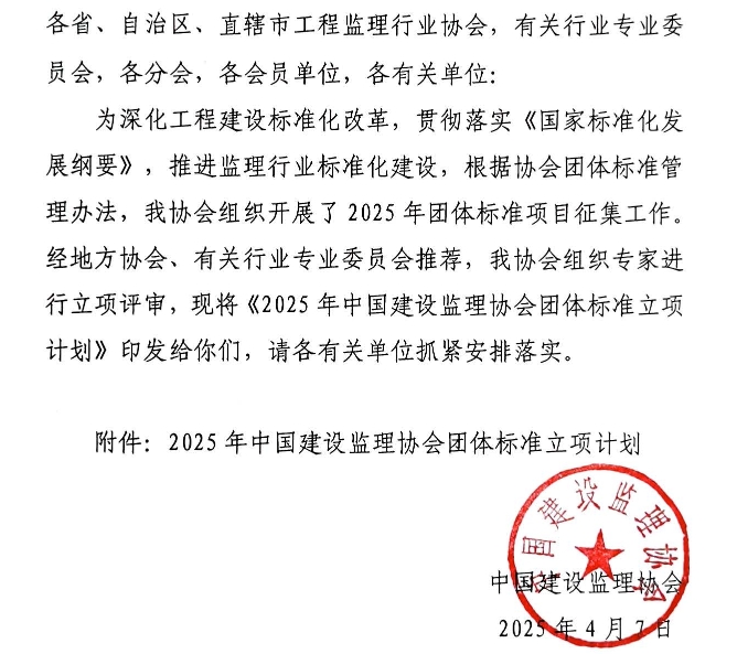 關于發布《2025年中國建設監理協會團體標準立項計劃》的通知