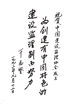 時(shí)任建設(shè)部常務(wù)副部長干志堅(jiān)為協(xié)會成立題詞