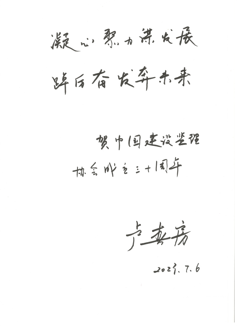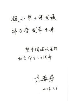 中紀(jì)委駐住房和城鄉(xiāng)建設(shè)部紀(jì)檢組原組長、原建設(shè)部總工程師、協(xié)會第一屆理事會常務(wù)副會長姚兵為協(xié)會成立30周年題詞