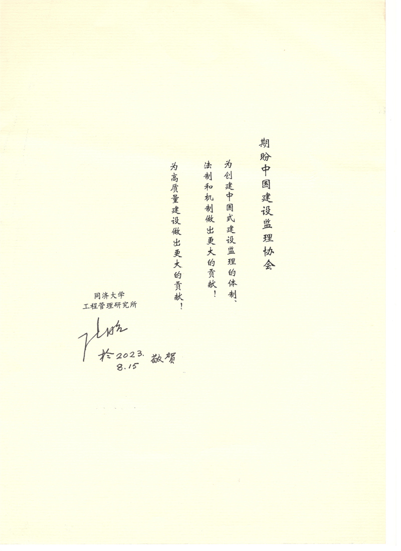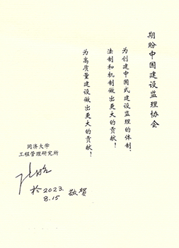 同濟(jì)大學(xué)工程管理研究所創(chuàng)始人、名譽(yù)所長丁士昭為協(xié)會成立30周年題詞