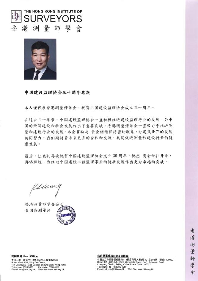 5月9日至10日,由香港建設(shè)管理中心主辦的“演變中的亞太區(qū)承包商角色”第一屆國際會議在香港召開,中國建設(shè)監(jiān)理協(xié)會作為襄助單位派出三位代表參加,協(xié)會會長譚慶璉副部長以“主禮嘉賓”的特殊禮遇應(yīng)邀出席會議并在開幕式上致詞。同時(shí),雙方就業(yè)務(wù)及培訓(xùn)等相關(guān)合作事宜進(jìn)行了商討。