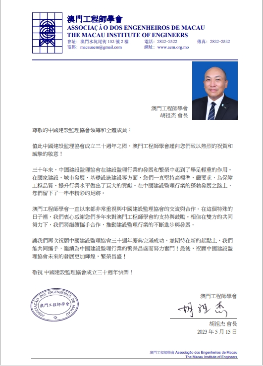10月8日,澳門工程師學(xué)會會長胡祖杰一行來訪中國建設(shè)監(jiān)理協(xié)會,就內(nèi)地與澳門地區(qū)工程監(jiān)理行業(yè)的發(fā)展現(xiàn)狀、未來發(fā)展進(jìn)行了交流,并簽署了合作備忘錄。