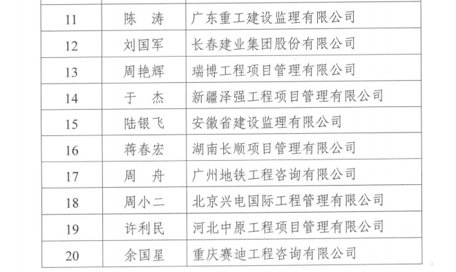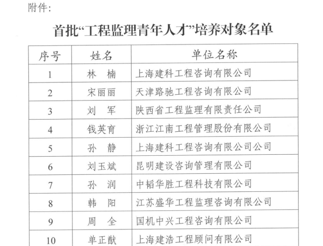關(guān)于公布中國建設(shè)監(jiān)理協(xié)會(huì)首批“工程監(jiān)理青年人才”培養(yǎng)對(duì)象名單的通知