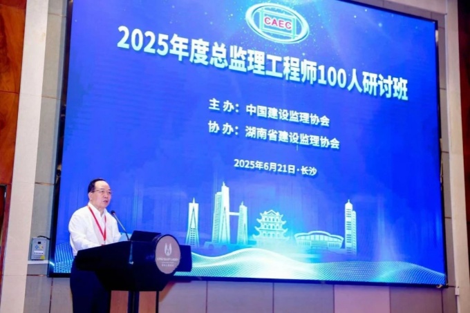 為全面貫徹落實黨的二十屆三中全會精神,助力實施人才強國戰略,加強總監理工程師隊伍建設,2025年6月21日,由中國建設監理協會主辦,湖南省建設監理協會協辦的“2025年度總監理工程師100人研討班(1期)”在湖南長沙成功舉辦。中國建設監理協會會長王早生,副會長兼秘書長、中國工程監理大師李明安,北京交通大學教授劉伊生,中國工程監理大師李偉、楊衛東、龔花強,湖南省建設監理協會常務副會長兼秘書長田英,湖南大學教授陳大川,浙江工程建設管理有限公司總工程師丁繼財,以及來自全國各地的工程監理企業總監理工程師100余人參加了本次研討班。