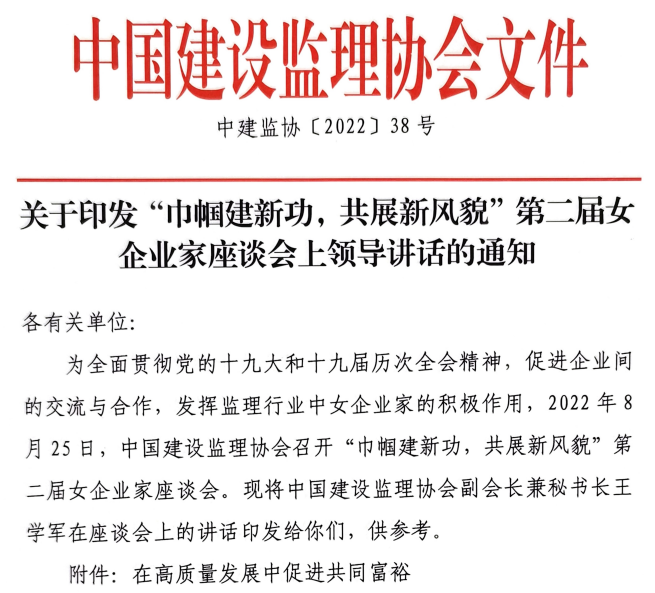 關于印發“巾幗建新功,共展新風貌”第二屆女企業家座談會上領導講話的通知