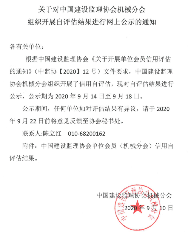 附件:中國建設監理協會單位會員(機械分會)信用自評價結果