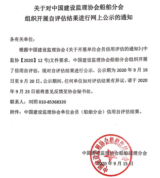 附件:中國建設監理協會單位會員(船舶分會)信用自評估結果