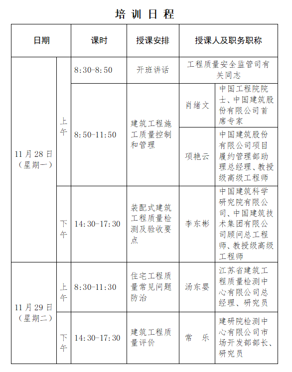 為進一步提高工程質量管理水平,按照《住房和城鄉建設部辦公廳關于印發2022年培訓計劃的通知》安排,住房和城鄉建設部工程質量安全監管司決定舉辦工程質量管理培訓班?,F將有關事項通知如下: