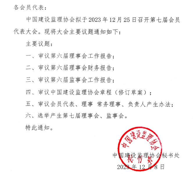 關于公布中國建設監理協會第七屆會員代表大會議題的通知