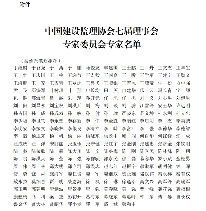 關于公布中國建設監理協會七屆理事會專家委員會專家名單的通知