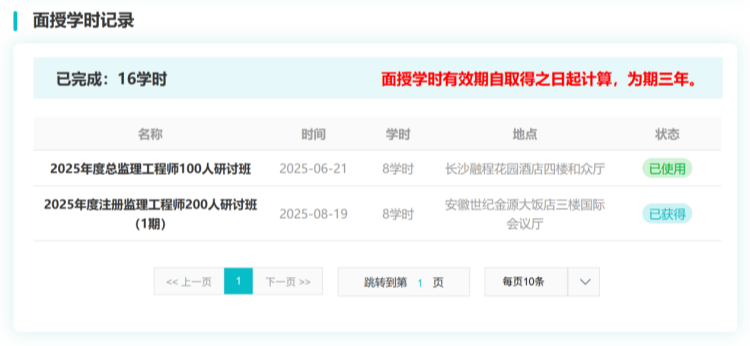 全新增設“面授學時記錄”功能,會員參加線下培訓班獲得的學時可自動錄入系統,與線上學時統一核算計入總學時。系統明確標注面授學時有效期(自取得之日起3年),支持學時狀態(已獲得/已使用)實時查詢,實現線上線下學時一體化管理,全面適配會員多樣化學習場景與執業要求。