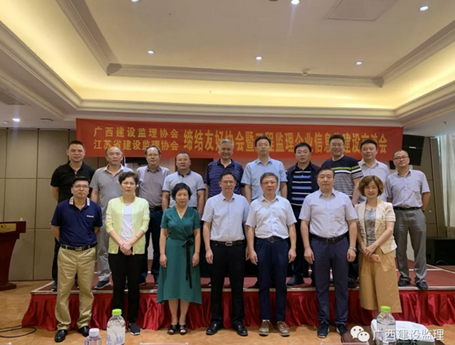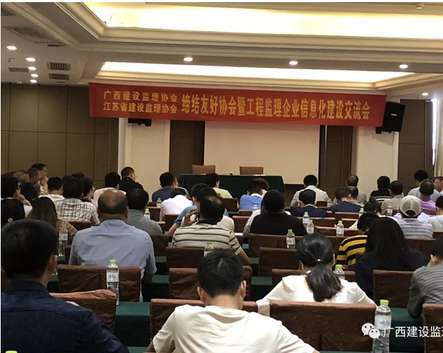 2019年7月4日上午,廣西建設(shè)監(jiān)理協(xié)會與江蘇省建設(shè)監(jiān)理協(xié)會締結(jié)友好協(xié)會暨工程監(jiān)理企業(yè)信息化建設(shè)交流會在廣西南寧市順利召開。江蘇省建設(shè)監(jiān)理協(xié)會陳貴會長一行10人出席,本會負(fù)責(zé)人及企業(yè)代表80多人參加了本次交流會。