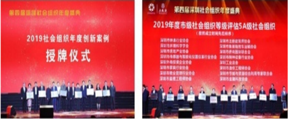 2020年1月15日下午,深圳市民政局、市社會組織管理局、市社會組織總會在深圳灣體育館舉行第四屆深圳社會組織年度盛典暨中國公益領袖鵬城對話活動。市監理工程師協會再次蟬聯深圳市第四屆“社會組織風云榜”,榮獲“2019深圳市社會組織年度創新案例獎”,同時被授予“深圳市5A級社會組織”。市政府副市長黃敏、市政協副主席陳倩雯、王璞等領導出席活動并為獲獎社會組織頒獎、授牌。來自全市各社會組織及社會各界人士約8000人參加了活動。