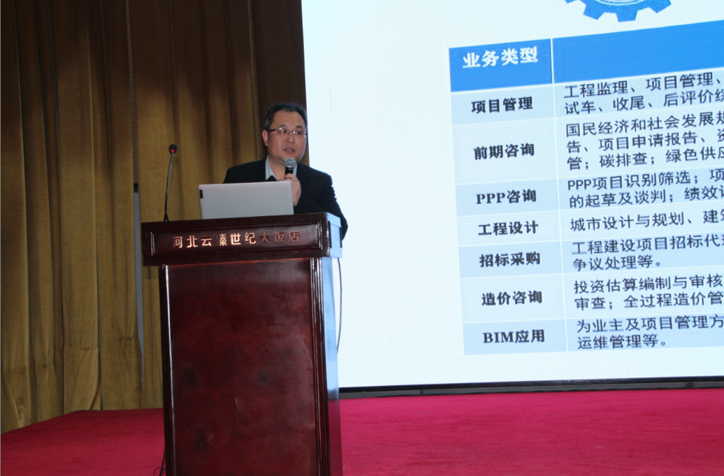 河北中原工程項目管理有限公司副經理徐榮香作了題為《新引擎 · 新技術 · 新發展》的經驗交流,分別從公司綜合業務系統建設、BIM技術應用、項目全咨平臺研發三個方面進行了詳細闡述。