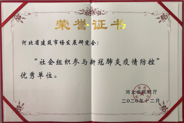 近日,河北省民政廳對助力脫貧攻堅優(yōu)秀社會組織和參與新冠疫情防控優(yōu)秀社會組織進行通報表揚,河北省建筑市場發(fā)展研究會榮獲“京津冀社會組織跟黨走—助力脫貧攻堅行動”優(yōu)秀單位,“社會組織參與新冠肺炎疫情防控”優(yōu)秀單位兩項榮譽。