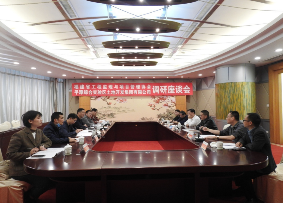 4月7日下午,平潭綜合實(shí)驗(yàn)區(qū)土地開發(fā)集團(tuán)有限公司黨委委員、副總經(jīng)理林東明一行6人到福建省工程監(jiān)理與項(xiàng)目管理協(xié)會(huì)調(diào)研交流。福建省工程監(jiān)理與項(xiàng)目管理協(xié)會(huì)會(huì)長林俊敏、常務(wù)副會(huì)長饒舜、副會(huì)長兼自律委員會(huì)主任鄭奮、副會(huì)長兼秘書長江如樹、監(jiān)事長劉立、福建省人防協(xié)會(huì)會(huì)長林劍煌參加座談會(huì)。
