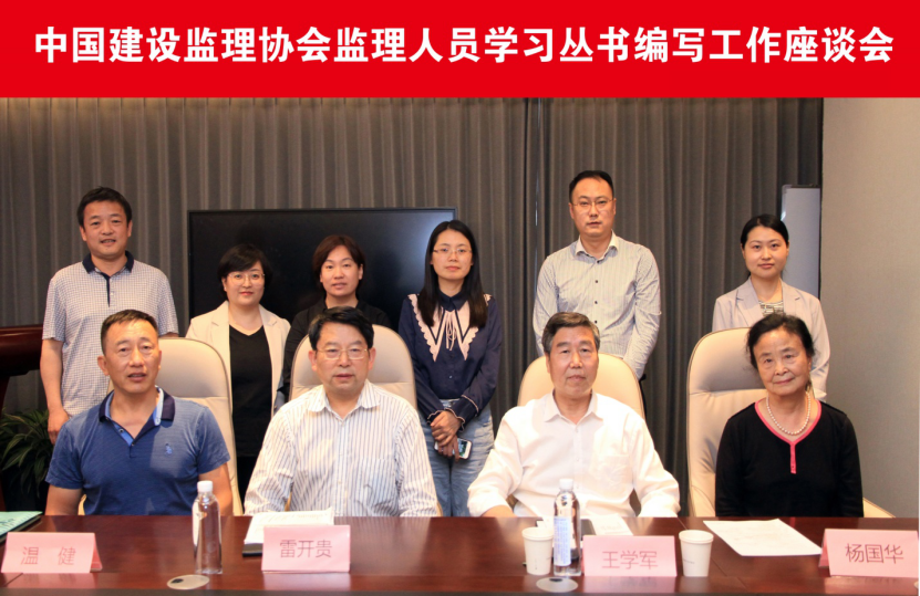 2021年5月27日,中國建設監理協會在泉城濟南召開了監理從業人員學習叢書編寫工作座談會。中國建設監理協會副會長兼秘書長王學軍、副秘書長溫健、培訓部副主任宋雪文出席會議,重慶市建設監理協會會長雷開貴、貴州省建設監理協會會長楊國華、山東省建設監理與咨詢協會副理事長兼秘書長陳文、副秘書長陳剛以及同濟咨詢研究院院長敖永杰等專家參加了會議。會議由溫健副秘書長主持。