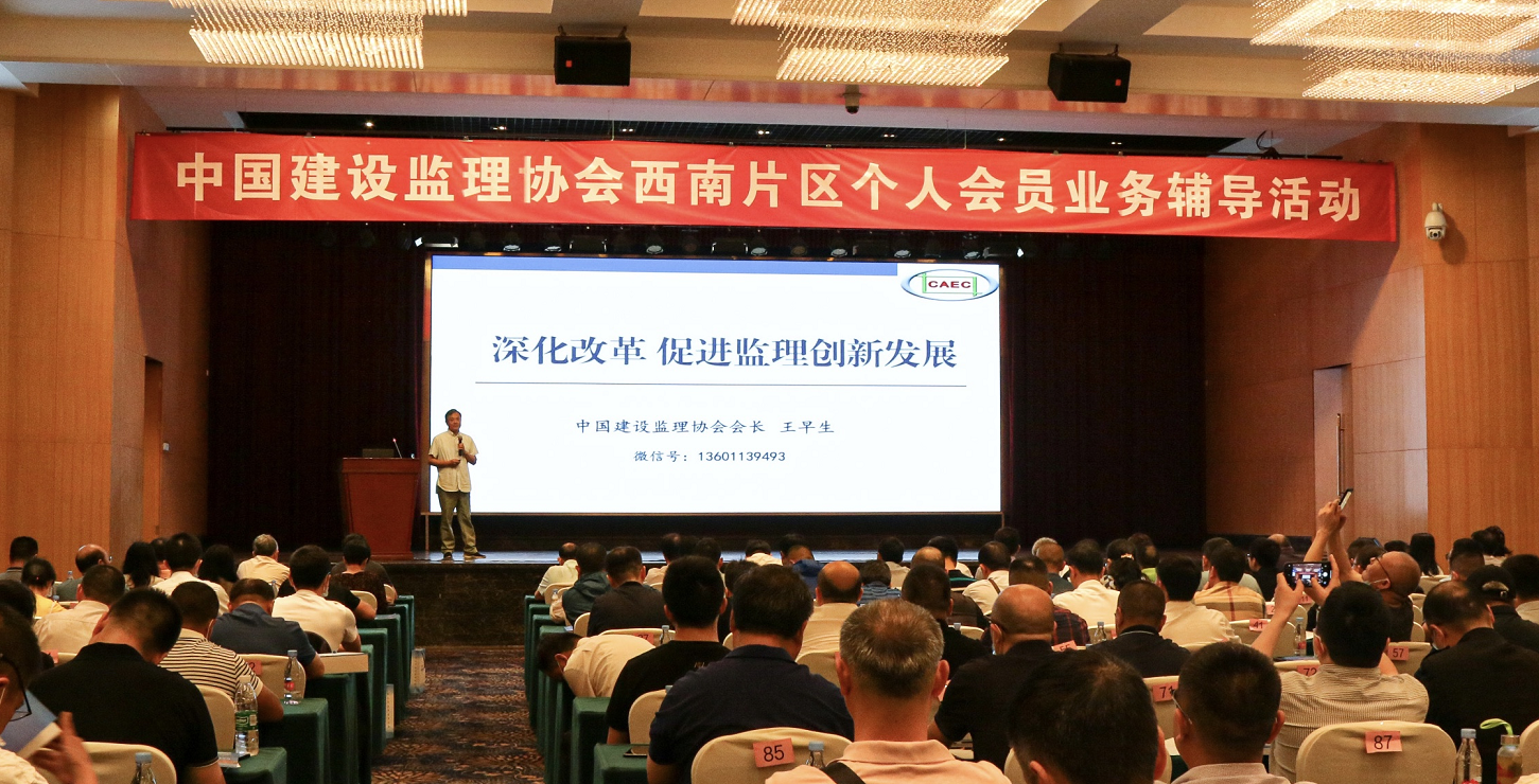 2021年6月10日,中國建設(shè)監(jiān)理協(xié)會(huì)在重慶市舉辦了西南片區(qū)個(gè)人會(huì)員業(yè)務(wù)輔導(dǎo)活動(dòng)。中國建設(shè)監(jiān)理協(xié)會(huì)會(huì)長(zhǎng)王早生出席活動(dòng)并作專題講座。來自云南、貴州、四川、重慶約250余名會(huì)員代表參加了本次活動(dòng)。活動(dòng)由中國建設(shè)監(jiān)理協(xié)會(huì)副會(huì)長(zhǎng)、重慶市建設(shè)監(jiān)理協(xié)會(huì)會(huì)長(zhǎng)雷開貴,中國建設(shè)監(jiān)理協(xié)會(huì)副會(huì)長(zhǎng)、四川省建設(shè)工程質(zhì)量安全與監(jiān)理協(xié)會(huì)秘書長(zhǎng)付靜主持。