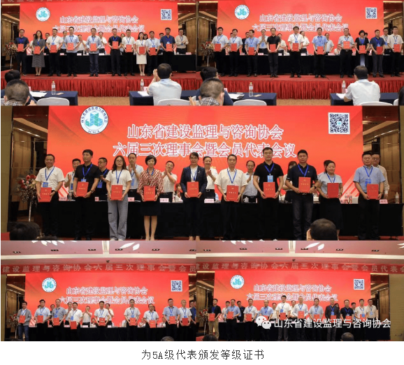 會議第二階段,王華杰、徐海東、胡雪晶分別宣讀了山東省建設(shè)監(jiān)理與咨詢協(xié)會2019-2020年度評價為5A級的全過程工程咨詢會員單位、會員監(jiān)理企業(yè)及從業(yè)人員、招標(biāo)代理機構(gòu)及項目負責(zé)人名單。王潤曉副廳長等領(lǐng)導(dǎo)同志為榮獲5A級的會員企業(yè)和從業(yè)人員代表頒發(fā)了等級證書。