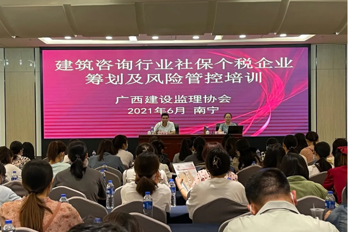 按照廣西住房城鄉(xiāng)建設(shè)行業(yè)黨委及區(qū)民政廳有關(guān)通知要求,結(jié)合黨史學(xué)習(xí)教育和“我為群眾辦實(shí)事·我為企業(yè)減負(fù)擔(dān)”專項(xiàng)行動(dòng),為增強(qiáng)協(xié)會(huì)服務(wù)能力,更好的助力會(huì)員企業(yè)持續(xù)健康發(fā)展,2021年6月20日,廣西建設(shè)監(jiān)理協(xié)會(huì)在南寧市東春大酒店開展建筑咨詢行業(yè)社保個(gè)稅企業(yè)籌劃及風(fēng)險(xiǎn)管控培訓(xùn),我會(huì)會(huì)員單位相關(guān)企業(yè)法人、總經(jīng)理、財(cái)務(wù)總監(jiān)、財(cái)務(wù)人員共182人參加了此次培訓(xùn)。