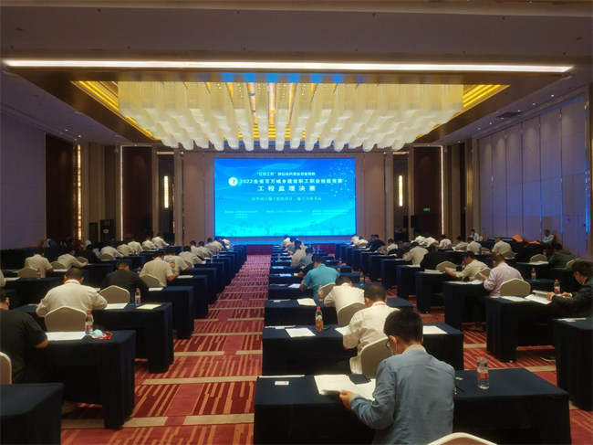 9月28至29日,由江蘇省住房和城鄉建設廳、江蘇省總工會和江蘇省教育廳聯合主辦,江蘇省人力資源和社會保障廳指導,江蘇省建設監理與招投標協會承辦,中建八局第三建設有限公司協辦的2022年江蘇省百萬城鄉建設職工職業技能競賽工程監理決賽在南京市溧水區舉行。中國建設監理協會會長王早生,江蘇省住房和城鄉建設廳副廳長王學鋒,南京市城鄉建設委員會副主任宋剛,中國建設監理協會副秘書長溫健,江蘇省住房和城鄉建設廳建筑市場監管處處長汪志強,江蘇省住房和城鄉建設廳工程質量安全監管處處長蔣惠明,江蘇省建設工會工作委員會副主任佘玉龍,江蘇省建設監理與招投標協會會長陳貴,江蘇省建設監理與招投標協會秘書長曹達雙和中建八局第三建設有限公司黨委書記、董事長張述堅等領導、嘉賓及來自全省13個設區的領隊、聯絡員、裁判員、參賽選手等共150余人參加了開幕式,開幕式由江蘇省建設工會工作委員會主任齊朝輝主持。