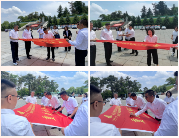 在抗聯戰士群雕前,吉林省建設監理協會黨支部舉行了班旗簽名儀式。