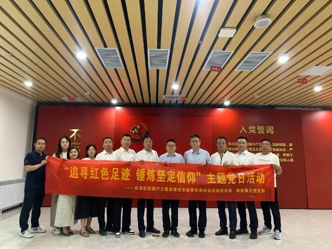 2024年7月9日下午,新疆維吾爾自治區住房和城鄉建設廳工程質量安全監管處和安全總站黨支部與協會第五黨支部(新疆建設監理協會黨支部)共同開展“追尋紅色足跡 錘煉堅定信仰”主題黨日活動。自治區工程質量安全監管處和安全總站黨支部書記徐波、副書記工程質量安全監管處副處長侯睿出席活動。