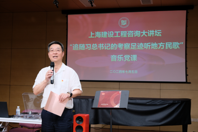 作為上海建設工程咨詢大講壇系列講座重要組成部分,今年是第三次舉辦音樂黨課。與以往不同,這次活動特邀上海黑膠文化專委會秘書長、上海市中外文化藝術交流協會辦公室副主任沈莉,作題為《“誰不說俺家鄉好——追隨習總書記的考察足跡聽地方民歌”》音樂黨課專題講座。此次沈麗女士攜帶珍藏多年的黑膠唱片,以現場播放唱片的方式,向觀眾呈現了黑膠唱片獨有的原始音色,獨具匠心地將黑膠藝術與紅色精神相融合,展現了一種別樣的藝術魅力。本次活動還邀請到了上海交響樂愛好者協會副會長、滬上著名樂評人李嚴歡蒞臨現場,共同學習和聆聽?;顒佑蓞f會秘書長徐逢治主持。