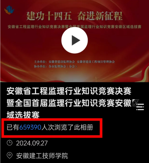2024 年 9 月 27 日,由安徽省建設監理協會、安徽省建設工程項目管理協會聯合主辦的“安徽省工程監理行業知識競賽決賽暨全國首屆監理行業知識競賽安徽區域選拔賽”決賽(以下簡稱:競賽),在安徽建工技師學院隆重盛大舉辦。