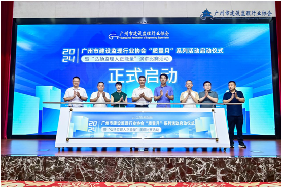 2024年9月9日,由協會主辦的2024年廣州市建設監理行業協會“質量月”系列活動啟動儀式暨“弘揚監理人正能量”演講比賽,在華泰賓館六樓深圳廳隆重拉開序幕。本次活動以“工程衛士 質量強市 質量強企 撐起廣州工程質量一片天”為主題,旨在深入弘揚監理行業的正能量,凝聚行業共識,共同推動廣州市工程質量水平的提升。