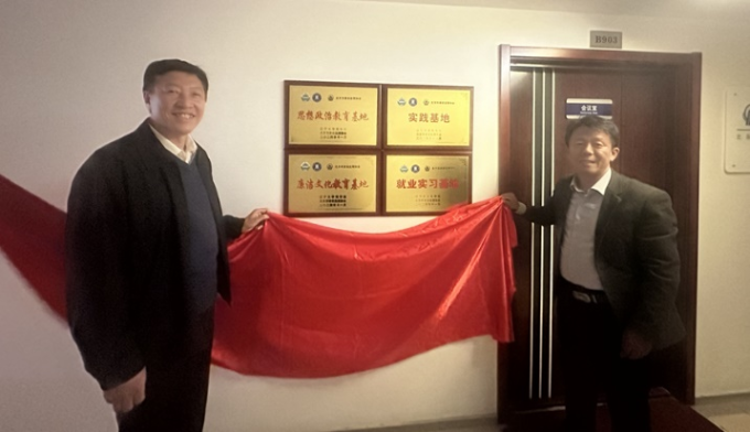 最后,遼寧大學商學院黨委書記李玉華與北京市建設監理協會會長張鐵明共同為遼寧大學與北京市建設監理協會共建的“實踐基地”“就業實習基地”“思想政治教育基地”和“廉潔文化教育基地”揭牌,并簽署合作協議書。