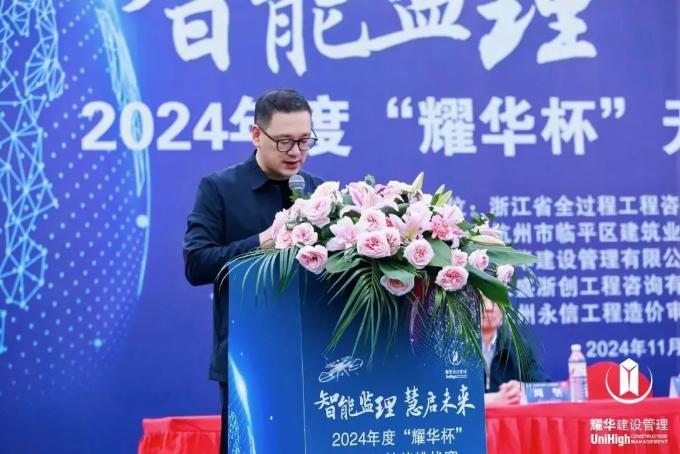 鄭志鋒代表杭州市臨平區住房和城鄉建設局對各位領導、嘉賓、參賽選手的到來表示熱烈歡迎。他指出,在住房和城鄉建設領域,“數字住建”正加速推進人工智能、物聯網、區塊鏈等技術深度融合應用;無人機、BIM 技術等智能化、數字化手段已廣泛運用于工程監理和全過程工程咨詢領域。他認為此次無人機技能大賽契合監理咨詢行業的發展需求,同時祝愿所有參賽選手賽出水平、賽出風格,彼此學習、共同提升技術水平。