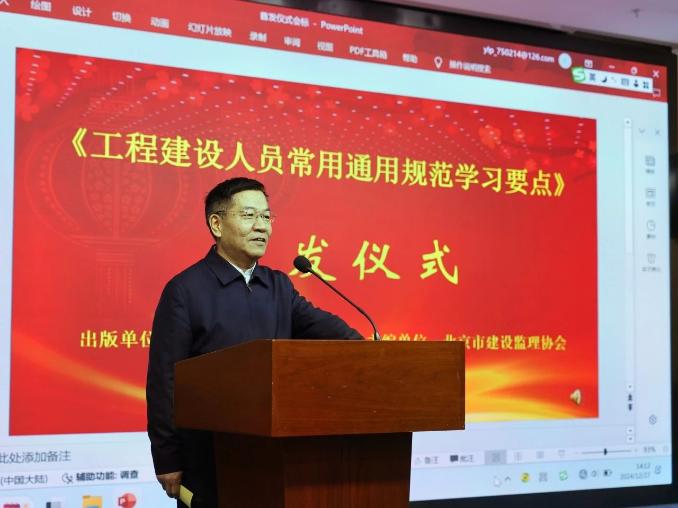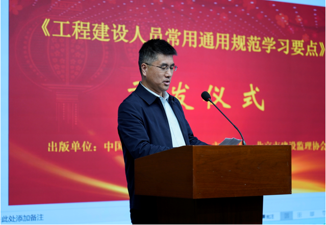 《通規(guī)學(xué)習(xí)要點》策劃人李偉秘書長作新書發(fā)布推介,指出本書通過對《建筑與市政工程施工質(zhì)量控制通用規(guī)范》GB55032-2022、《混凝土結(jié)構(gòu)通用規(guī)范》GB55008-2021、《施工腳手架通用規(guī)范》GB55023-2022、《建筑與市政施工現(xiàn)場安全衛(wèi)生與職業(yè)健康通用規(guī)范》GB 55034-2022、《建筑與市政工程防水通用規(guī)范》GB55030-2022和《建筑節(jié)能與可再生能源利用通用規(guī)范》GB55015-2021等六部通規(guī)的分析研究,理清了在通規(guī)執(zhí)行中與其直接相關(guān)的國家現(xiàn)行標(biāo)準(zhǔn),對相關(guān)內(nèi)容進行了穿透性解讀和索引,目的是使讀者建立標(biāo)準(zhǔn)體系概念,指導(dǎo)廣大工程建設(shè)人員更好地理解和掌握這些規(guī)范,在工程實踐中準(zhǔn)確應(yīng)用和執(zhí)行。號召北京監(jiān)理行業(yè)在新的一年中要深入學(xué)習(xí)通規(guī),從加強對總監(jiān)理工程師的通規(guī)專項培訓(xùn)著手,帶動全員學(xué)習(xí)的熱情,不斷提升監(jiān)理工作能力,并培養(yǎng)一批高水平專家,同時要在2025年全國工程監(jiān)理人員知識競賽中取得好成績。