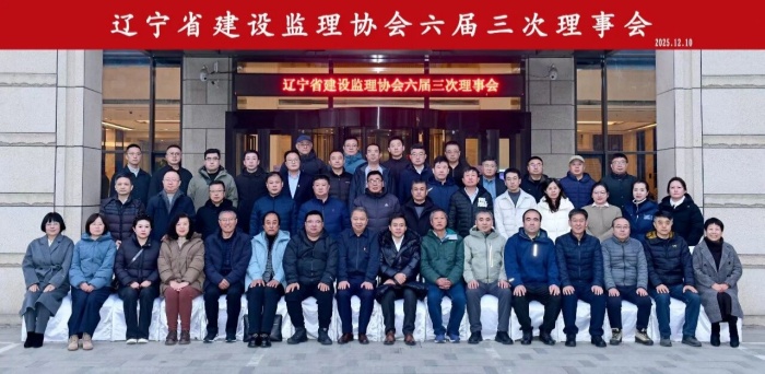 2025年12月10日,遼寧省建設監理協會六屆三次理事會在沈陽召開。遼寧省住建廳建筑市場監管處副處長周墨臻、遼寧省建設監理協會會長宋建輝、副會長關增偉、秘書長臧岐,沈陽市建設監理協會會長柴永江、秘書長劉囝,大連市工程建設監理協會秘書長柯洪清、丹東市建設工程監理協會會長蔡斌、葫蘆島市建設監理協會會長王金寶及來自全省各地理事監事代表共50人出席了會議。會議由遼寧省建設監理協會秘書長臧岐主持。