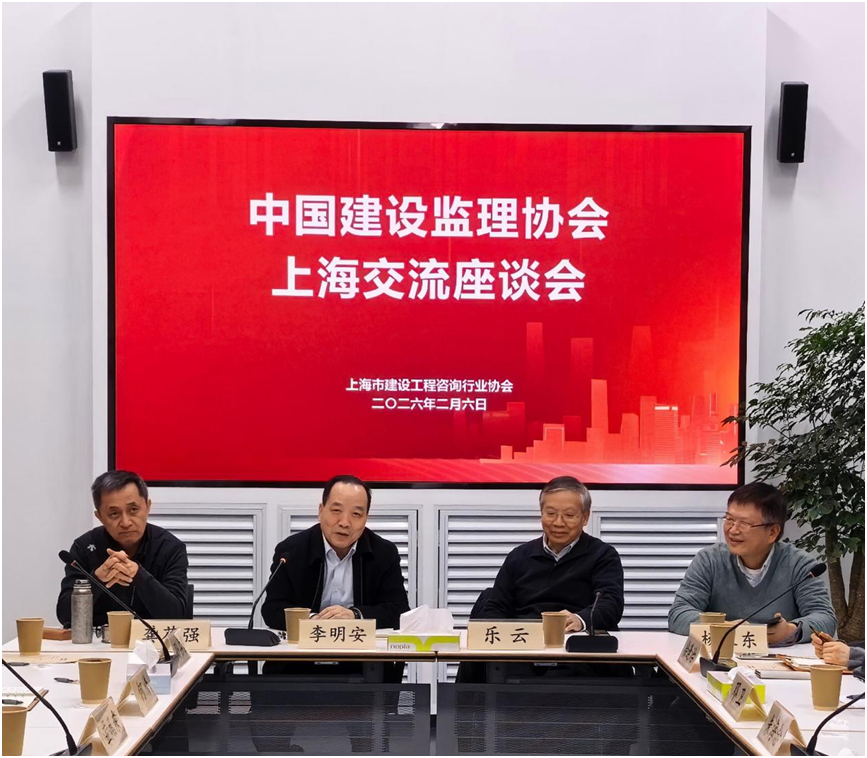 2026年2月6日下午,中國建設(shè)監(jiān)理協(xié)會與上海市建設(shè)工程咨詢行業(yè)協(xié)會工作交流座談會在上海召開。中國建設(shè)監(jiān)理協(xié)會副會長兼秘書長、中國工程監(jiān)理大師李明安,同濟(jì)大學(xué)教授樂云,中國工程監(jiān)理大師龔花強(qiáng)、楊衛(wèi)東,上海市建設(shè)工程咨詢行業(yè)協(xié)會顧問會長孫占國,副會長鄧衛(wèi)、何情,秘書長徐逢治等出席會議。座談會由上海市建設(shè)工程咨詢行業(yè)協(xié)會秘書長徐逢治主持。
