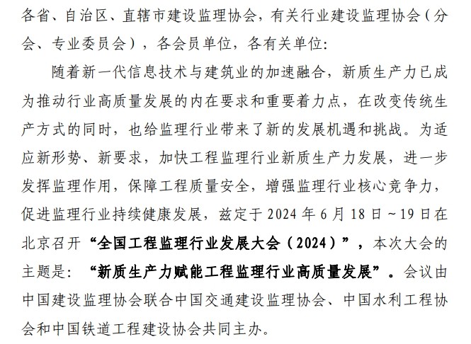 全國工程監理行業發展大會(2024)1號通知
